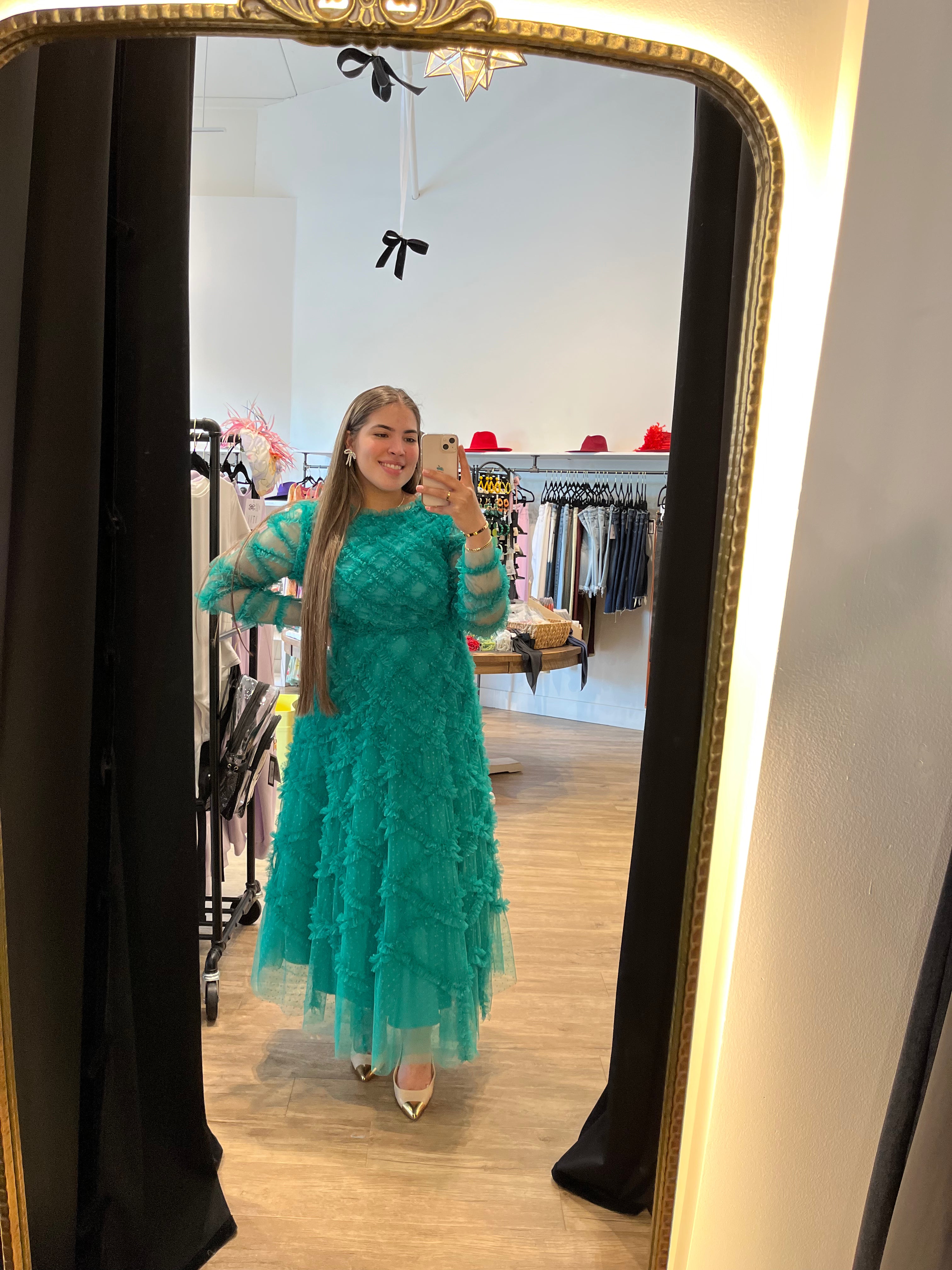 Indulge in pure luxury with our Emerald City Dress. Crafted from ethereal green tulle, this formal masterpiece boasts a stunning emerald color that radiates elegance. Perfect for any special occasion, this dress is sure to make you feel like a true fashion icon. Own the spotlight in the Emerald City Dress.